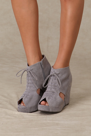 This wedge heel by Jeffrey Campbell is a luxe meld of oxford, peep-toe and wedge, done in a perforated grey suede, perfect to dress up a spring ensemble! To really show them off, pair them with a pencil skirt or skinny ankle-length pants. Then when the weather really warms up, dress them down with your favourite denim shorts! They're $138.00 from Free People.